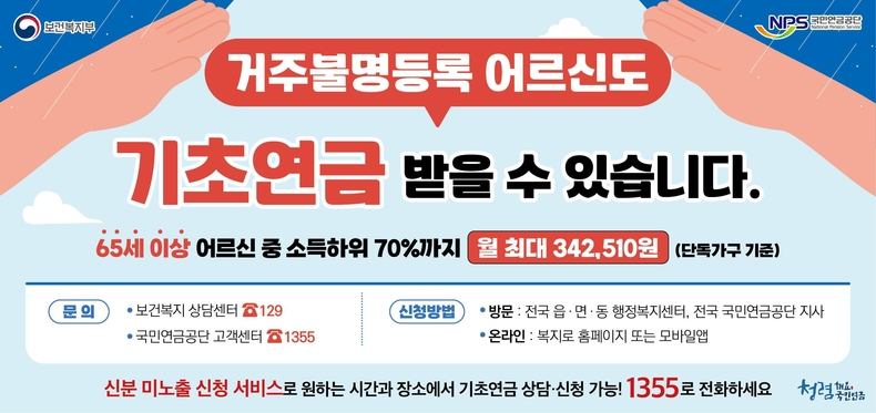 기초연금은 거주불명 등록 상태라도 국내에 거주하는 만 65세 이상 국민이라면 신청할 수 있고, 소득인정액 등 선정 기준에 맞으면 신청한 달부터 급여를 받을 수 있다. 하지만 거주불명자는 신분 노출을 피하거나 가족과도 관계가 단절되어 연락처 확보가 어려운 경우가 많다. 이 때문에 문자, 우편 등 일반적인 행정 홍보가 닿지 않아 신청 대상인데도 신청하지 않는 사례도 적지 않다. 공단은 이러한 사회적·행정적 여건을 고려해 12월 5일까지 거주불명자 집중 홍보 기간을 갖고 적극적으로 신청자를 발굴하겠다는 방침이다.