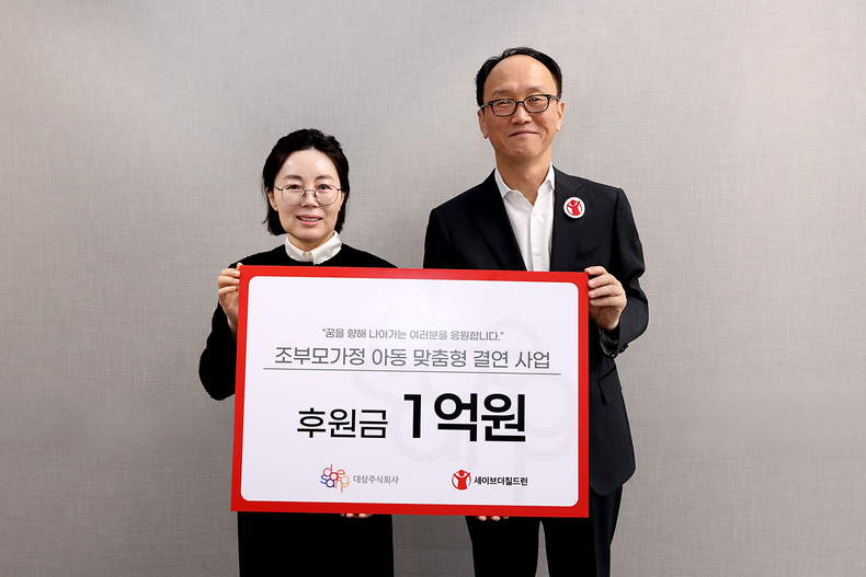 [한국시니어신문] 대상이 국제아동권리 비정부기구(NGO) ‘세이브더칠드런’과 함께하는 ‘조부모가정 아동 맞춤형 결연 사업’을 위해 1억 원의 후원금을 전달했다고 28일 밝혔다.